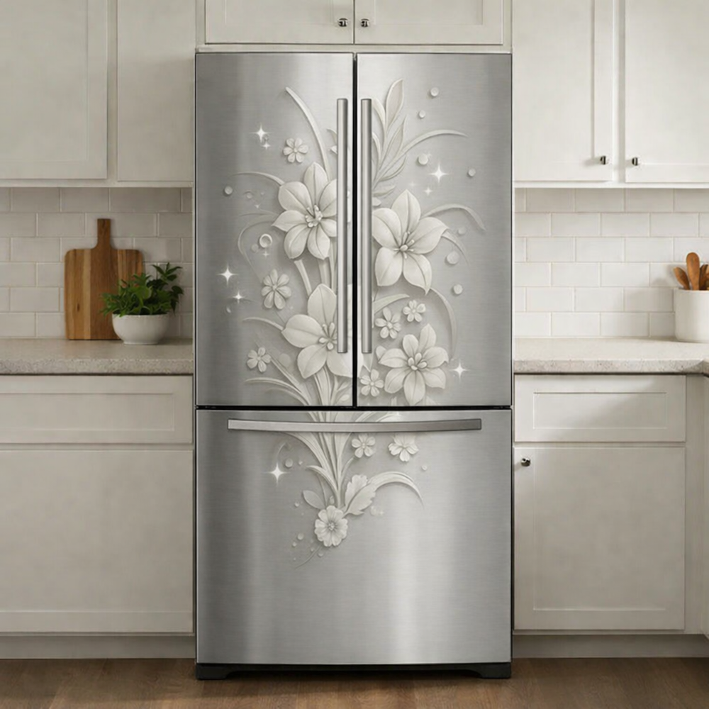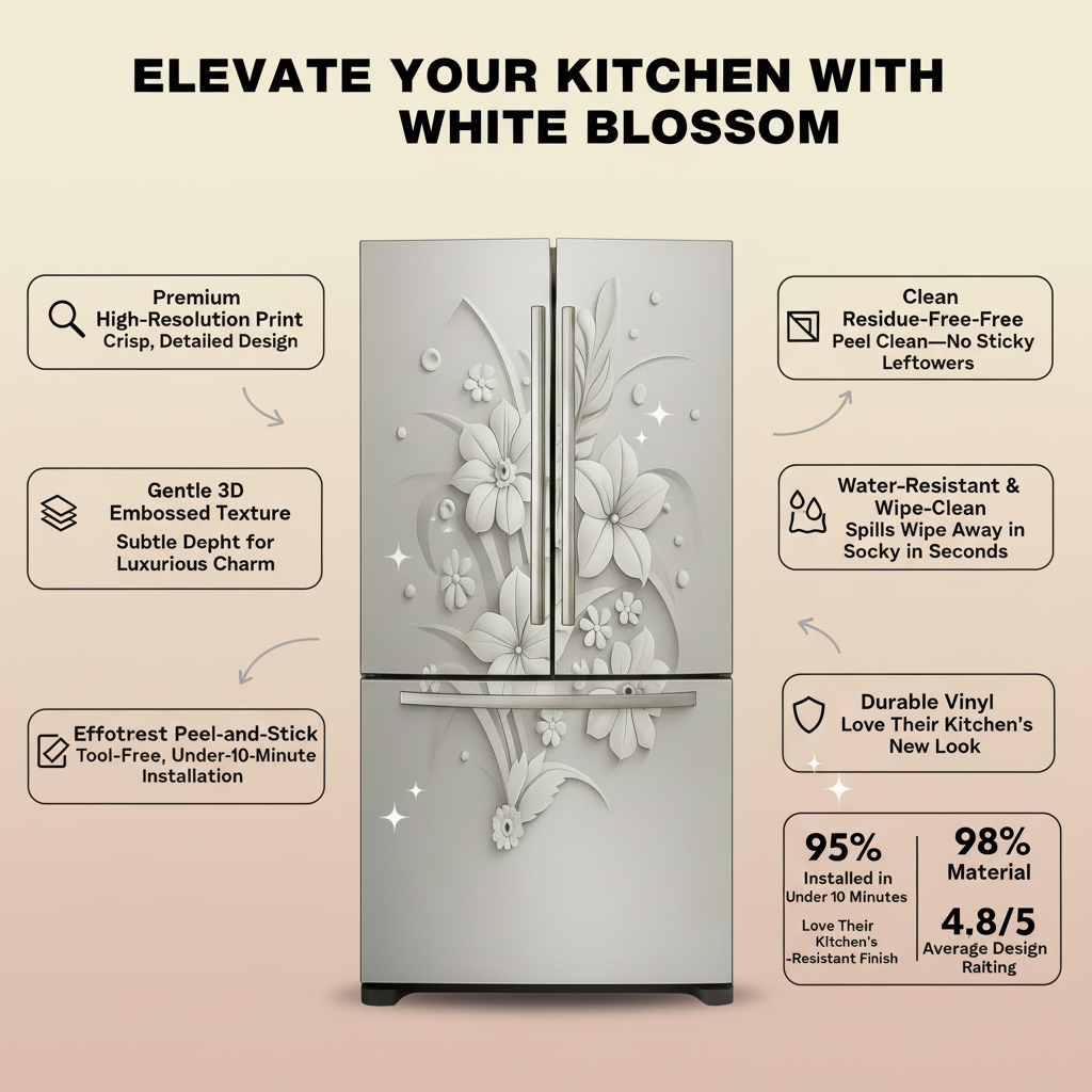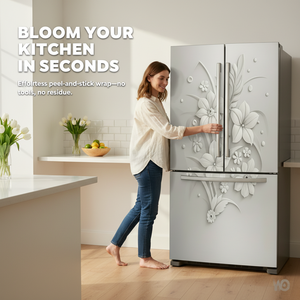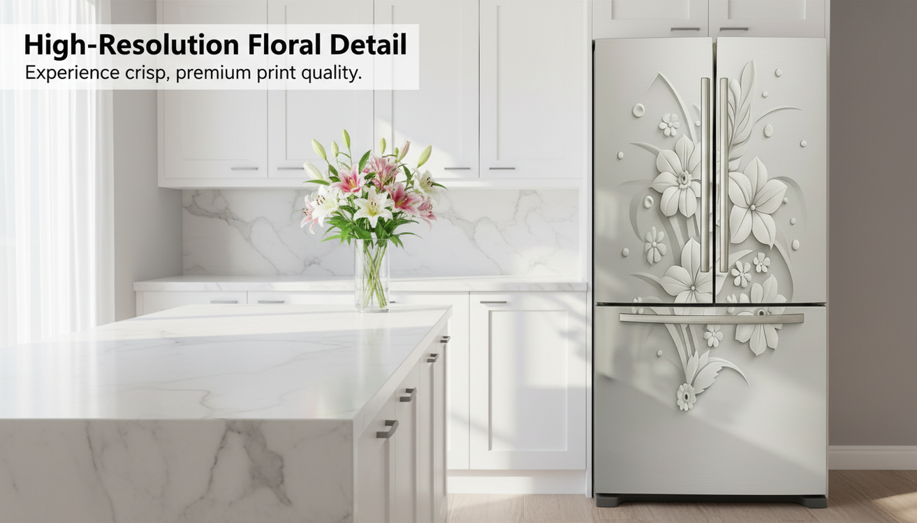 Elevate your kitchen decor instantly with White Blossom’s elegant white floral vinyl wrap. Its high-resolution print and subtle embossed texture add depth and charm to any style. No tools necessary—peel, stick, and enjoy a water-resistant surface that cleans effortlessly and removes without a trace. Refresh your space today!